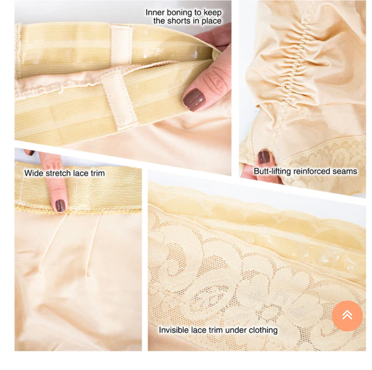 Leg elastic mesh shaping fabric smooths the appearance of lumps and bumps.